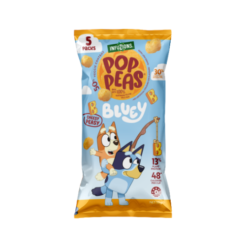 Snack time has never been so cheesy with Bluey and Bingo. Bluey Cheesy Peasy Poppeas are made with 100% Aussie grown split peas. These delicious bite-sized, light and fluffy lunchbox treats will have every kiddo asking for more. Pleeease face!
