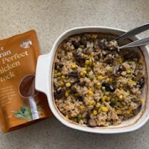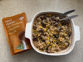 Matt Moran’s Perfect Chicken Stock was an excellent ingredient for my family’s favourite Mushroom, corn and pea risotto. Added the ‘perfect’ touch for a hearty meal.