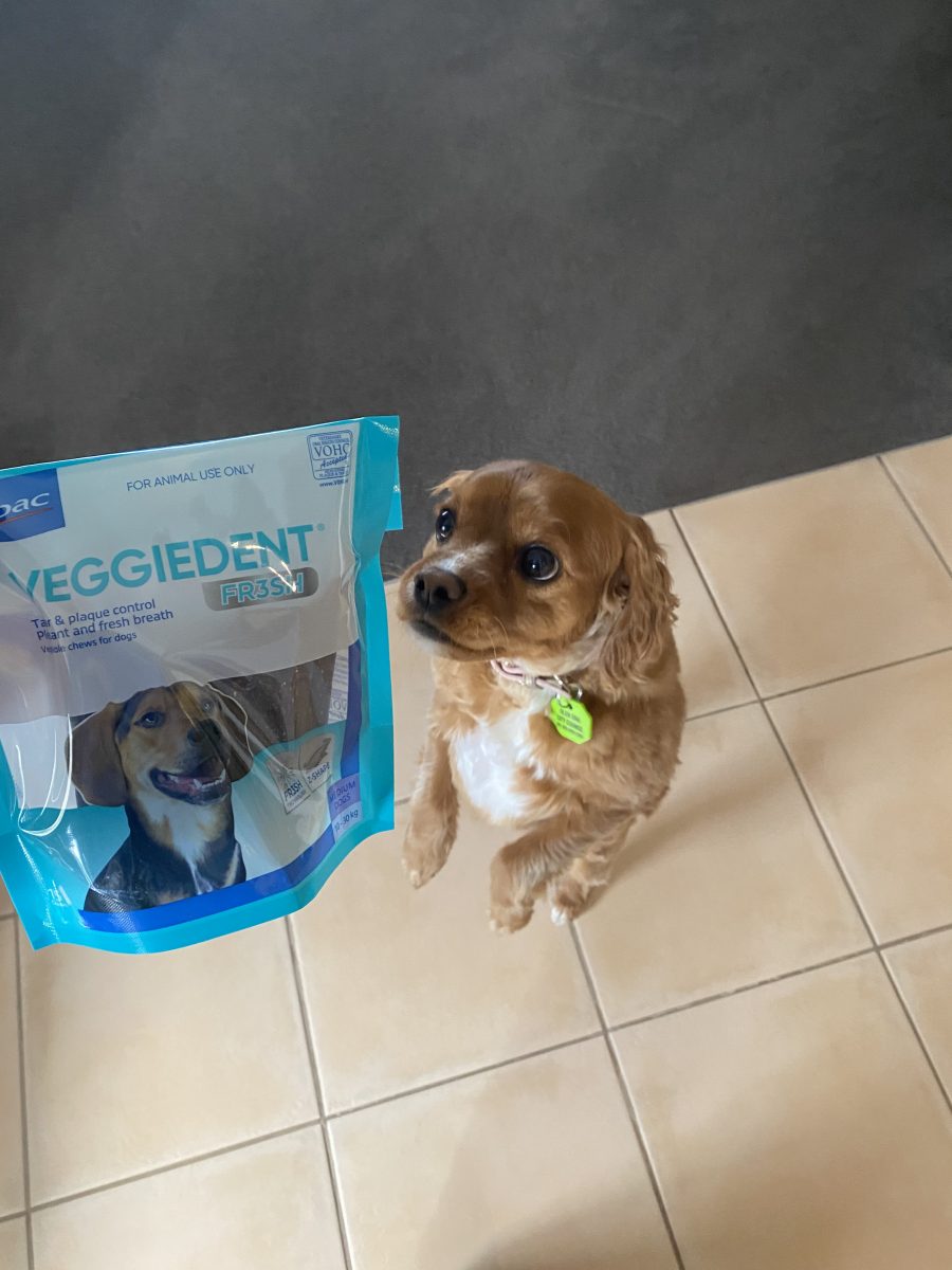We have a rescue puppy with some dental issues, and getting her to chew anything—especially things meant to help her teeth—has been a real struggle. She usually turns her nose up at dental treats or just hides them. After trying several products with no luck, we gave VeggieDent® FR3SH™ Dental Chews a try… and wow, what a difference.